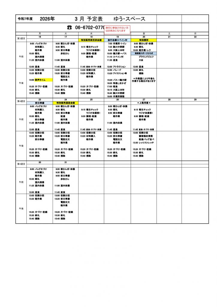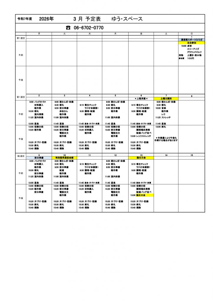 ▶2026年3月月間予定表 ダウンロードはこちら